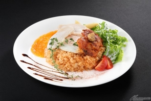【右】空を行く 双翼(< /rp>そうよく) ~蒸し鶏と旨辛チキンのジャンバラヤ~ 価格:1,080円(税込)