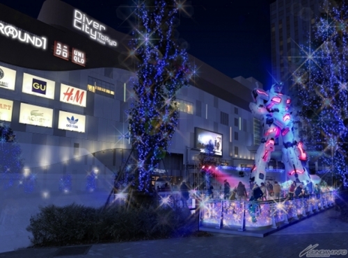 於東京台場「DiverCity Tokyo Plaza」2F節慶廣場聳立的「實體大獨角獸高達立像」,至2018年1月31日(三)前實施冬季限定的點燈秀。