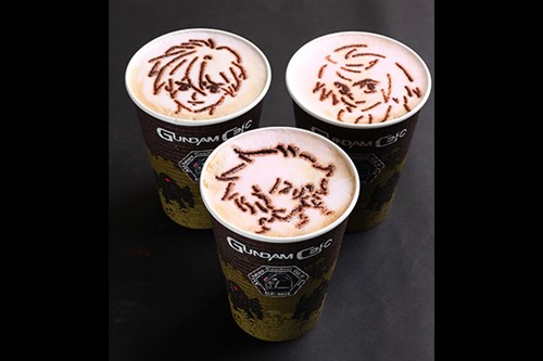 本飲料畫上了歷代男性角色的臉,「GUNDAM Café 秋葉原店」有23種、「GUNDAM Café 台場店」有19種、「GUNDAM SQUARE」有22種圖案。價格為一杯464日圓(含稅)。
