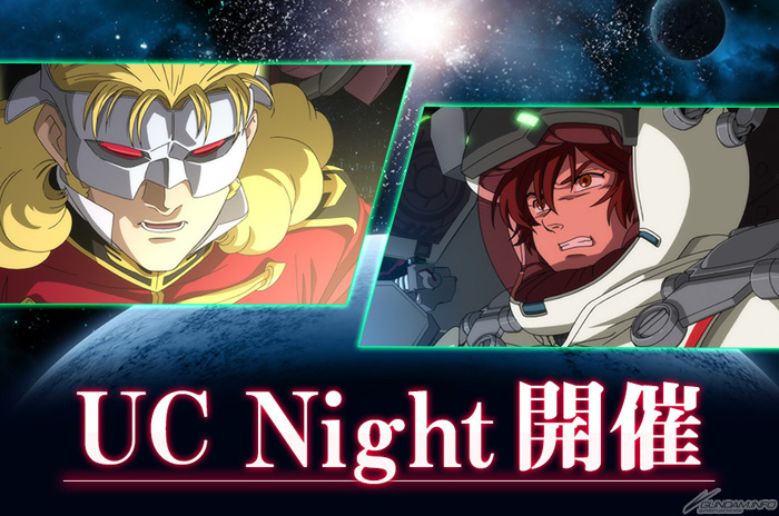「UC Night」推出預購餐點、預購特典、限定飲品。店内螢幕除了能欣賞到依各主題播放的名場景之外,還會播放與官方APP「GUNDAM FAN CLUB」連結的投稿影片,並舉行各種活動。