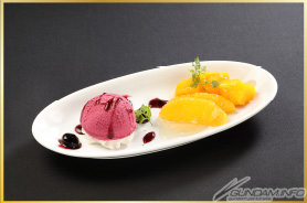 ・紅葡萄雪酪搭配水果拼盤