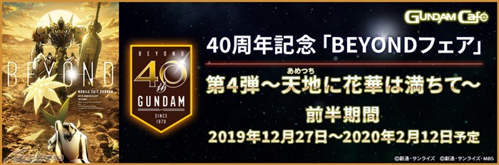高達官方咖啡廳「GUNDAM Café」全店和大阪「GUNDAM SQUARE」,將於12月27日(五)起舉辦「機動戰士高達40th記念BEYOND展第4彈~天地花滿開~前半」。