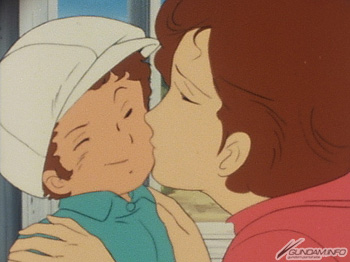 雖說和丈夫離別獨自一人生活,母親的服裝顏色卻顯得有點華麗。和阿姆羅分別的時候,在箱型車裡有別的男人正等著她。除了母親這個「角色」以外,她也是個活生生的人,也有著自己的生活。