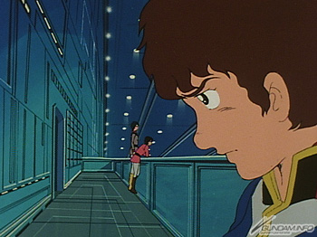 想要藉由討論關於阿姆羅的處分,加深與米萊之間的關係,布萊特不經意地想將手搭到她的肩上。對照起第3話對雪拉的姿態來思考,這充分表現了布萊特的年輕氣盛。但是,米萊卻微微改變了姿勢,以不傷害布萊特的方式避開這點,正是和雪拉不同的地方。這微小的動作反應了生長環境與性格的差異。接著阿姆羅的那張怪叫,賽璐璐畫片裡的角色,瞬間浮現出人味。