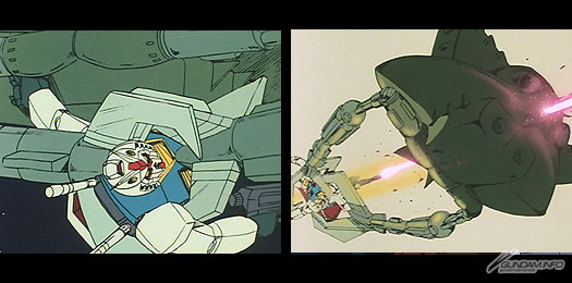 這次的戰鬥舞臺是在能清楚看到地球的無重力圈以及其境界線。稍微低於軌道就可能會被重力拉下去。以第5話的悲劇為前提,營造戰鬥狀況的緊張感。在飛彈彈幕下努力避免掉入重力圈的阿姆羅展現了了不起的技術。