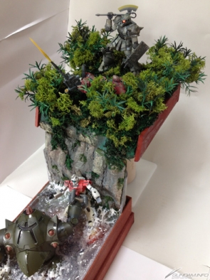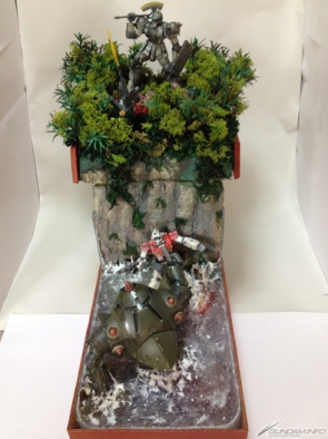 本次的最優秀獎得獎作品是大內勝利&大內悠生的作品「戰場之絆『擊墜目標!你那邊狀況如何?』」。將此得獎作品忠實呈現的這張插畫,不但仔細地描繪渣古的迷彩塗裝以及MS的汙損,還將場景模型以插畫獨有的魄力來表現.。