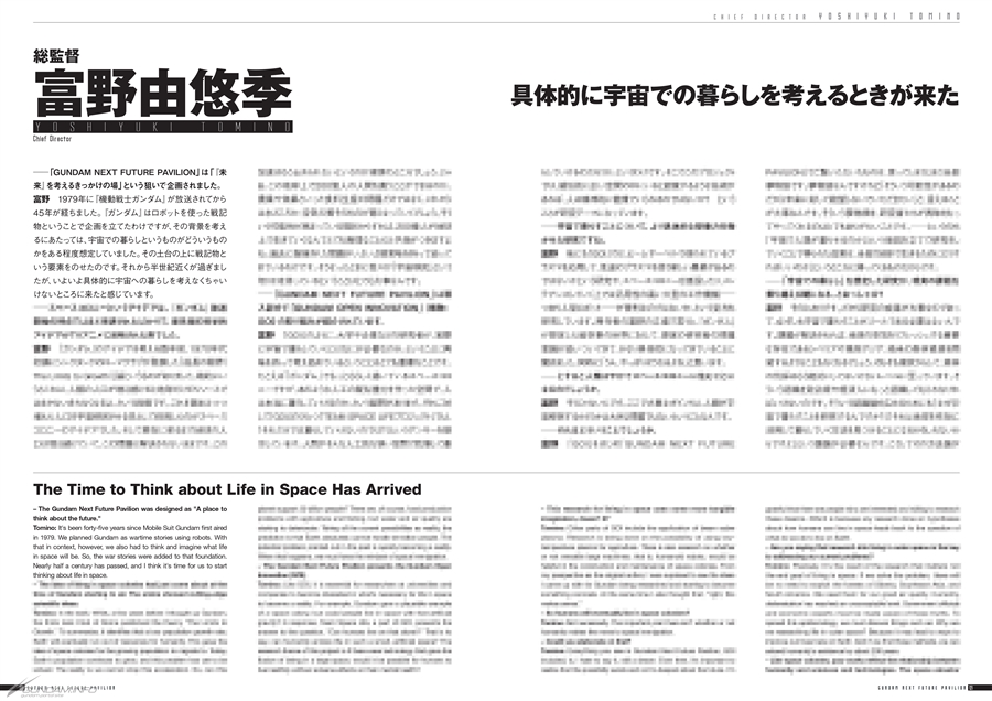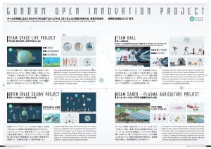 除了『GUNDAM: Next Universal Century』中出現的彼爾夫和背景設定外,本書還採訪了各領域的專家、大學、研究機構、尖端企業以及「高達Open Innovation」(以下簡稱GOI)的共創夥伴,介紹了展館內的一些舉措。