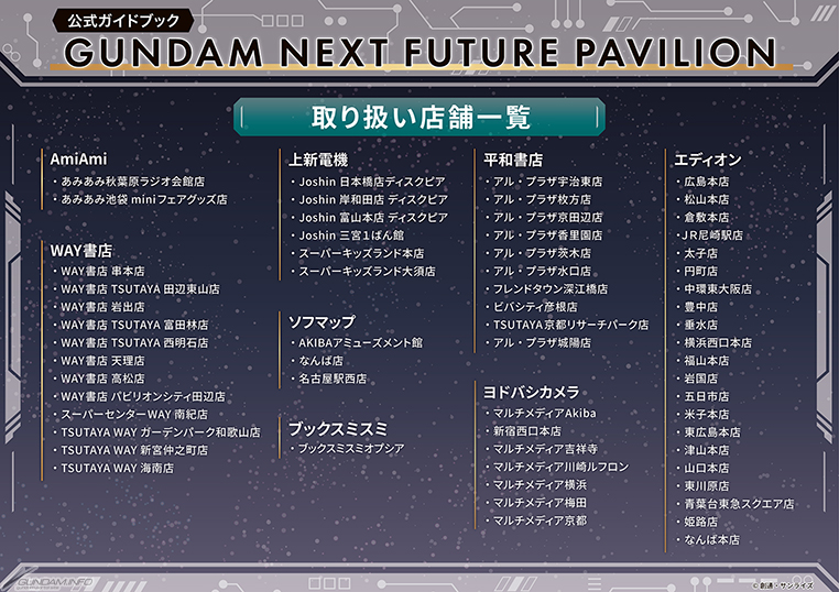 「GUNDAM NEXT FUTURE PAVILION」官方指南已在愛電王難波本店開始發售。 價格為3,850日圓(含稅)。