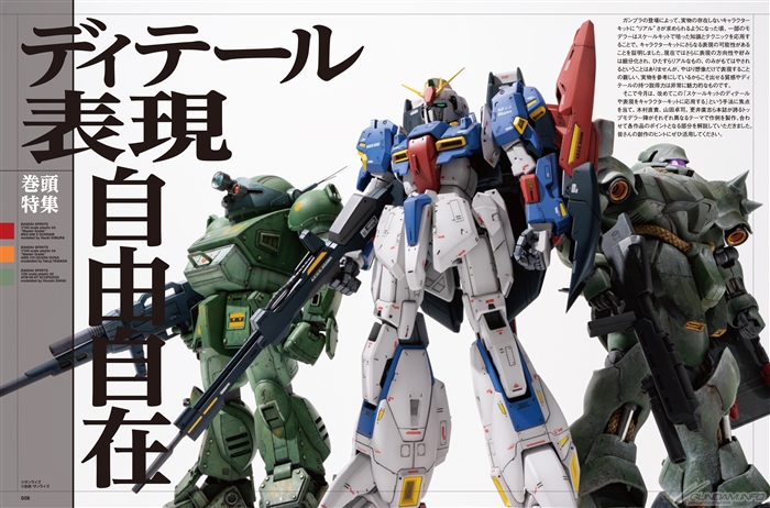 本月將聚焦在「將比例套件的細節及表現應用在角色套件上」這種手法上,由木村直貴、山田卓司、更井廣志這些本雜誌引以為豪的頂級模型家,以不同主題來分別製作範例。