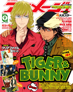 話題沸騰的『TIGER & BUNNY』在封面大特輯中初次登場!火速為各位帶來這部現今人氣沸騰的話題作特輯。封面圖是第一次在動畫雜誌登場喔☆ 插圖當然是虎徹&巴納比的雙人照。特輯將以Q&A問答形式直撃佐藤敬一導演!故事展開即將迎向最高潮♪ 接著是飾演虎徹的平田廣明×飾演巴納比的森田成一的夥伴對談!意氣相投的兩人展開愉快對話將氣氛帶到最高潮~!另外,最喜歡TIGER & BUNNY的人氣漫畫家三輪士郎老師和插畫家水玉螢之丞老師送上特別漫畫♪ 附贈封面插畫及新OP插入畫面的雙面海報,共計多達18P粉絲們必看的大特輯!! 附錄為豪華資料夾3張一組夏季版♥ 將現在最具話題性的作品插圖一口氣製成資料夾! 『輕音部!』資料夾正反面皆採用引起絕大迴響的唯&梓插圖,絕對讓粉絲們大呼滿意。『TIGER & BUNNY』和『青之驅魔師』在本雜誌的資料夾附錄中初次登場☆ 尺寸全為A4大小,雙面皆印有插圖的超划算禮品♪ 這個時期也要注目秋季新作大特輯! 雖然大家還在看夏季節目,但電視的世界裡已在進行秋季新節目的製作了,因此我們也立刻為各位帶來了動畫新作品情報☆ 以「關鍵人物訴說的關鍵人物」為主題,由作品相關的關鍵人物(=製作組成員)訴說作品内的關鍵人物(=角色),為各位帶來不一樣的觀點☆ 另外還有,人氣作品聲優特別談話4連發也不容錯過♥集合了『閃電十一人GO』的竹内順子小姐×寺崎裕香小姐,『夏目友人帳 參』的神谷浩史先生×井上和彦先生,『青之驅魔師』的岡本信彦先生×福山潤先生、『花開物語』的伊藤加奈惠小姐×小見川千明小姐×豊崎愛生小姐 ×戸松遙小姐等豪華陣容,為各位解析作品賣點和角色魅力! 到底會說出什麼樣的內容呢,就留給各位自行享用吧♪ 以及2種本月的投稿者全員特別服務企劃!! 『TIGER & BUNNY』原創圖書卡和『閃電十一人』卡片夾登場。動畫迷們現在馬上衝到書店去吧GO=3