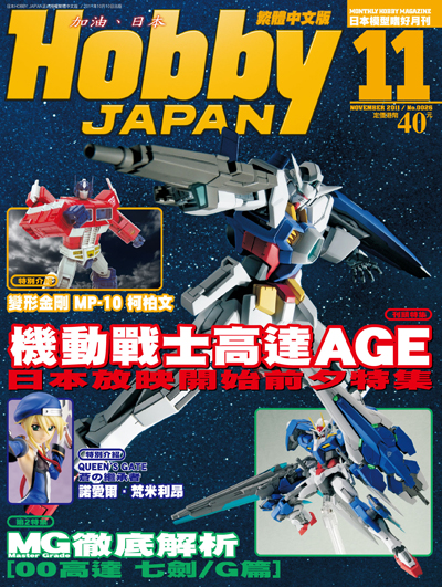 在10月放映開始前夕突然備受期待的『機動戰士高達AGE』。刊頭特集將作為放映開始的先驅、於9月發售的High Grade(HG)『高達AGE』系列第1彈:主角機「高達AGE-1 NORMAL」,以從初學者以至上級者均能享受的How to作徹底檢閱! 亦綜合其他今後及售的新套件及動畫最新情報,將『高達AGE』的魅力滿載送上!!