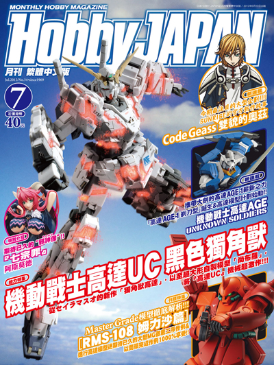 趁著episode 5「黑色獨角獸」將在5月22日於香港首映,送上為一眾讀者熱身的『機動戰士高達UC』總力特集!! 除了HGUC安古沙的套件檢閱外,亦將作為故事核心、「獨角獸高達2號機 報喪女妖」的MG套件,作為徹底製作講座一併送上。此外,來自『UC-MSV』、全裝備規格的DELTA高達改,以及由セイラマスオ負責、備受期待的新作HGUC獨角獸高達[破壞模式]等,將注目機體為題材的作例大舉刊登! 絕對是『高達UC』迷必看的一大特集!!