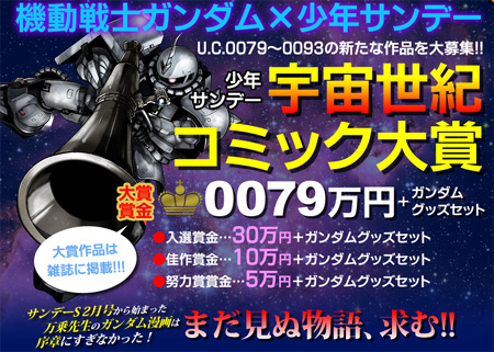 小學館的「少年SUNDAY」和高達跨界合作舉辦的「宇宙世紀漫畫大賞」已於日前發表相關消息、也開始接受作品投稿了。
