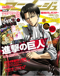 2014年第一本Animage,在封面登場的是去年引起熱潮,現在熱度也絲毫未減的『進擊的巨人』!圖案是會令人毫不猶豫獻上心臟的里維兵長個人肖像♥還附有這張插圖的全身版本海報☆