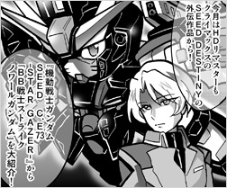 第3回是介紹『機動戰士高達SEED』系列外傳作品『C.E.73 -STARGAZER-』裡所登場「BB戰士 突擊哥達魯NOIR」。
