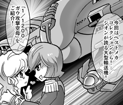 本漫畫是由在GUNDAM.INFO上連載深獲好評的報導漫畫 「SD 高達INFO」、大家所熟知的森本がーにゃ老師所繪製,用漫畫的方式來介紹高達模型的單元。第6回是介紹「機械精選集」中,自護引以為豪的大型運輸機「1/1200 卡烏攻擊空母」。