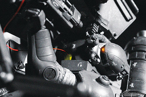 在危險的雷霆宙域消散,持續孤獨戰鬥的活死人師團狙擊手。『機動戰士高達 雷霆宙域』的作者太田垣康男,在Hobby Japan雜誌上首次以模型師的身分登場,並和在許多模型雜誌上的WildRiver荒川直人合作,將本作角色的日常以記錄片風格來呈現。一般的場景模型多半是先有可以參考的圖片或影像在,但這次是由荒川先完成場景模型,再由太田桓從當中捕捉到的印象完成本作的運鏡、將作品的魅力傳達給讀者;創造出極具臨場感、一點都無法想像這是固定模型的畫面來。