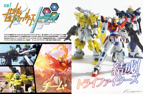 從第1話起就以高潮揭開故事序幕的TV版動畫『高達創戰者TRY』。電擊HOBBY雜誌的改造製作範例也自本月起解禁!除了有HG「製作燃燒高達」、「重裝力量型吉姆」的徹底改造範例外,還有預定11月發售的「電光高達」搶先介紹!! 一次為大家送上TRY FIGHTERS隊的所有機體!