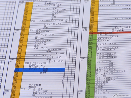 這次特別讓大家看看部分稱為「台割」本的設計圖。可以清楚明白設定的壓倒性份量。