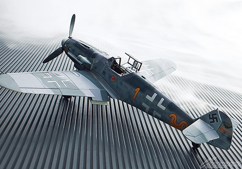 “Messerschmitt Bf109G-6”是活躍於第二次大戰中期〜末期,德國空軍的主力戰鬥機。其表現在背後支持了眾多王牌,且以多采多姿的標誌征服了模型愛好者的心。由於其高人氣,各模型廠商也曾發售過多款套件。