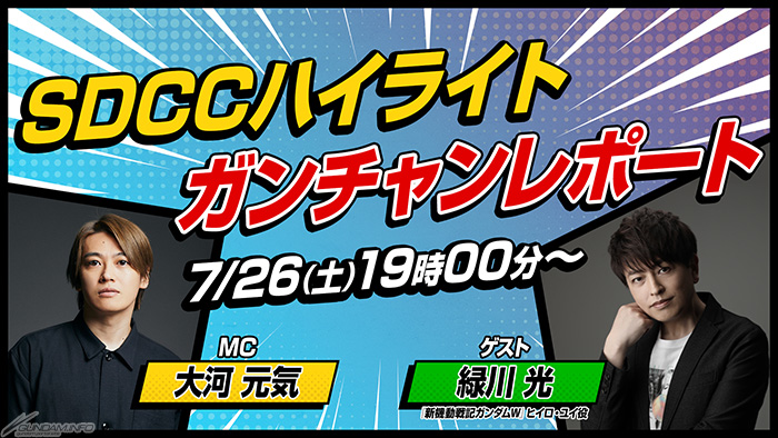 在《機動戰士高達W》中扮演希羅‧尤的綠川光作為嘉賓,作為MC的元氣大河將出現在特別節目「SDCC(聖地牙哥動漫展)亮點甘燦報告」中,該節目定於7月26日星期六19:00在YouTube高達頻道直播。