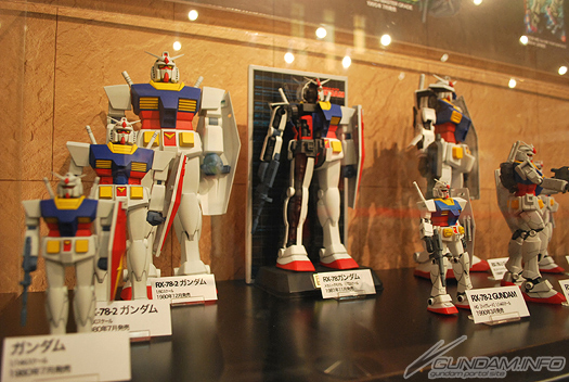 歷代高達的主角機一字排開。光是 RX-78 竟然就推出過這麼多款的高達模型呢。