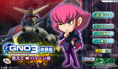 由在「機動戰士Ζ高達」中登場的哈曼・坎恩、克瓦特羅. 巴吉納、卡密兒. 維登等3人,以針對『GNO3』的世界,一步步地照著實際遊戲的流程來說明為主要內容。