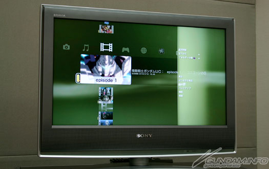 以USB線連接PS3®與PSP®,選擇「影片」裡的「機動戰士高達UC 第1話」按下「