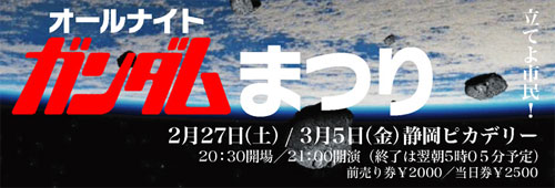 2月26日起在靜岡市展開的「SHIZUOKA CINEMA PARK FESTIVAL 2010」影展期間,2月27日(六)和3月5日(五)將舉行「通宵上映會 高達祭」活動。