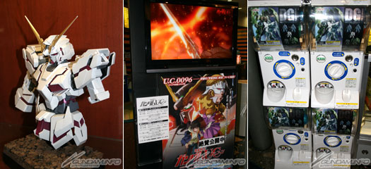 電擊HOBBY雜誌1月號內刊載的「1/48 獨角獸高達胸像」的展示、及宣傳影片的播映。甚至會場上還有設置扭蛋「DIGITAL GRADE(DG)獨角獸高達」機台呢!