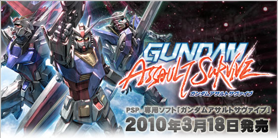 終於越來越接近發售日3月18日,由BANDAI NAMCO GAMES出品所發售Play Station Portable(以下簡稱 PSP®)専用軟體『高達突擊生存戰(GUNDAM ASSAULT SURVIVE)』是目前為止皆於PSP®上發售,以高人氣著稱的「高達激鬥系列」團隊所贈與全體玩家的最新高達動作遊戲。