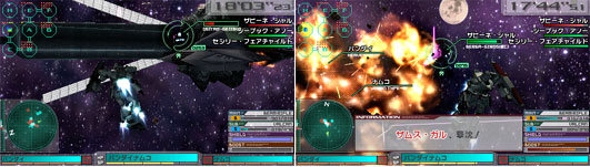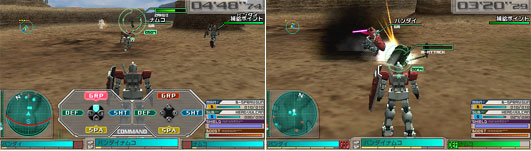 ▲ 單人遊玩模式,可對2台機體的僚機分別命令執行「格鬥攻撃」、「射撃攻撃」、「防禦與回避」、「SP攻撃」等4種指示。以確中目標的指示讓戰局往有利的方向前進吧!