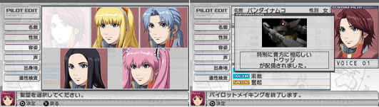 ▲ 駕駛員製作的部份,總共準備了男女分別臉型×5、髮型×5、聲音×10等模組。可自由地進行組合,創造出自己專屬的原創駕駛員吧!