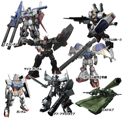 ▲這裡所介紹的只是非常小的一部分!其他還有從非常有名的MS到「咦?連這樣的MS也加入?」這種讓人非常驚訝的小機體機,各式各樣超過300台以上的機體登場喔!