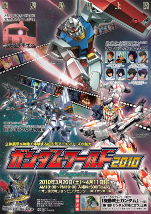 以立體展示和影像,來體驗高達魅力的活動「GUNDAM WORLD 2010 in鹿兒島」,3月20日(六)~4月11日(日)期間,在ÆON鹿兒島購物中心3F ÆON HALL舉行。