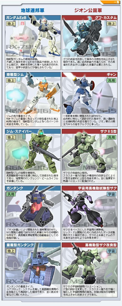 另外,還追加了『甘恩』與『渣古IIS型』等在第1輪無法開發的機體4台,共有10台機種可以開發。(※各機體的可開發時期將會因為技術等級以及所屬陣營而有差異。)
