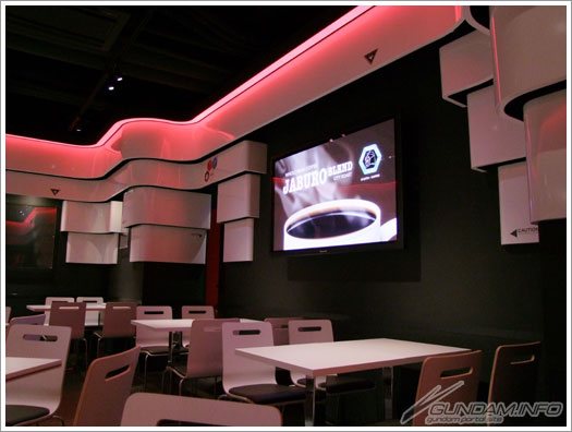 店內以高達的世界觀為題材,大量使用曲線造型,來表現近未來感的設計。