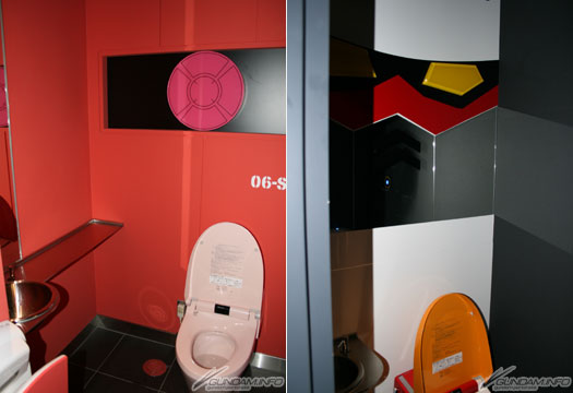 以高達和馬沙專用渣古為主題,分別設計的男女廁所內,各自設有神祕的機關按鈕喔。