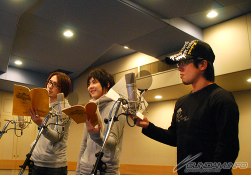 飾演劉備高達的梶 裕貴先生挾在中間,右邊是飾演張飛高達的加藤將之先生,左邊是飾演關羽高達的安元洋貴先生。三個人已經合作無間!