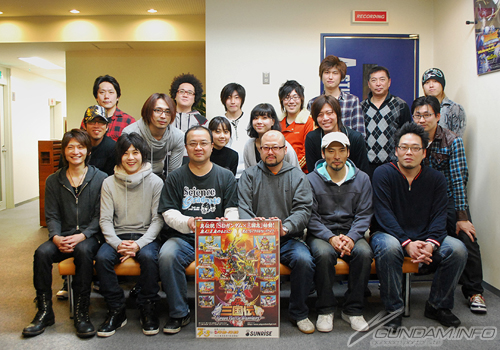 (第一排左起,飾演孫權高達的島﨑信長先生、飾演劉備高達的梶裕貴先生、森邦宏導演、鈴木健一導演、飾演呂布多魯基斯的宮内敦士先生、飾演曹操高達的乃村健次、