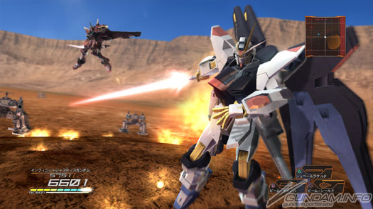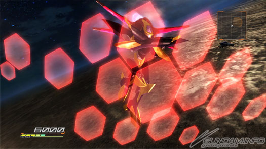 惑星地區上的戰鬥。在畫面左上角的是無限正義高達。