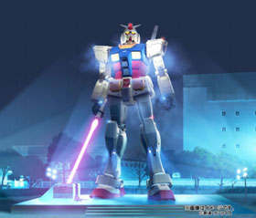 「RG1/1高達」的右手,將會握著代表性的裝備「光束軍刀」,以更真實、更具臨場感的全新樣式登場。除了頭部可上下左右轉動外,全身約50處設有發光裝置、14處內藏了噴霧設備,而且,在夜間預定還有全新的燈光秀演出。