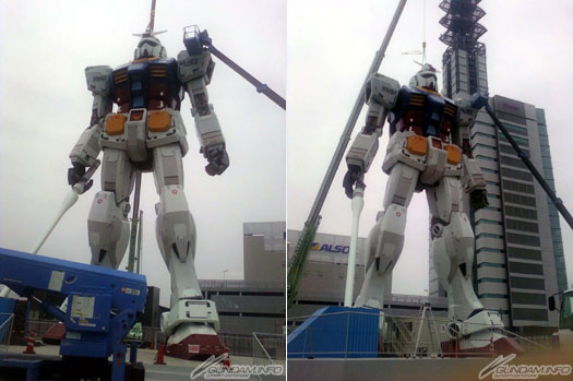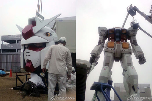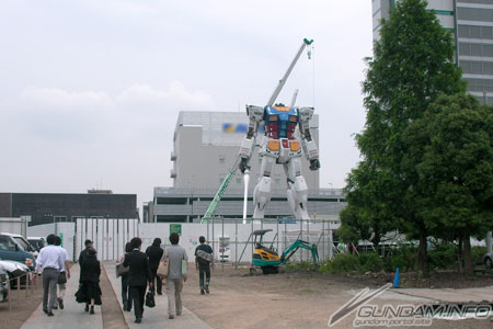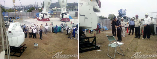 「機動 戰士高達 」 總導演富野 由悠季 ,率領著建造相關業者,舉行設置前的安全祈願儀式。當天,靜岡周邊的天氣預告為雨天,不過當天卻毫不受到影響,頭部安裝工程照原定計畫進行。