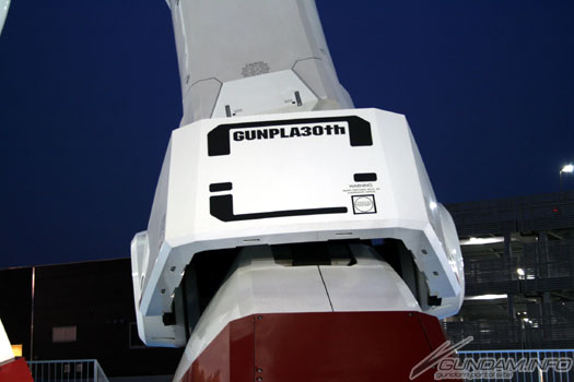 在全身的各個部位,印著全新的高達30周年紀念標誌。「RG 1/144 RX-78-2高達」等,在會場販賣的高達模型,附屬著相同紀念標誌的轉印貼紙。