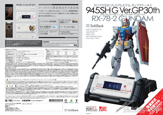 7月上旬開始於全國的SoftBank Shop各店鋪配發高達模型手機「945SH G Ver.GP30th」的小冊子。小冊子內容現正公開於高達模型手機的官方網站上。