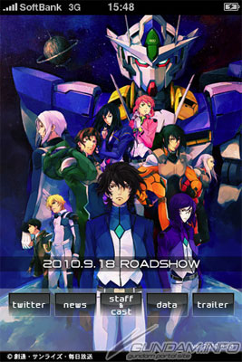 應用程式中除了有登場角色及MS等基本情報、可以觀賞預告動畫之外,還有即時發布的最新情報,並且可以與 twitter連動進行留言。