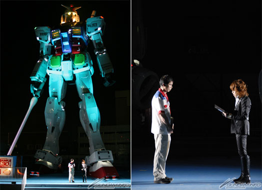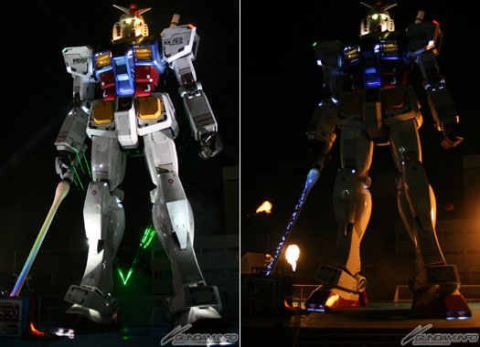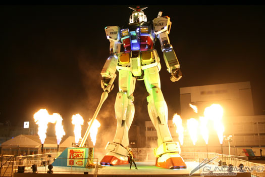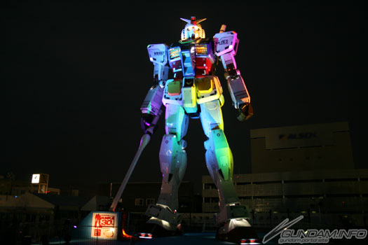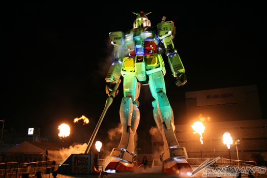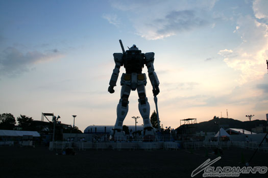 太陽完全下山了,周圍漸漸變暗,為高達立像打上了燈光。前夜祭即將開始。