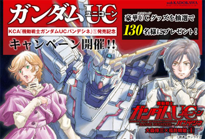 為了紀念在月刊高達ACE上好評連載中的 「機動戰士高達UC BANDE DESSINEE」的漫畫第1集發售,「機動戰士高達UC」總計130名可獲得豪華商品的抽獎活動實施中。