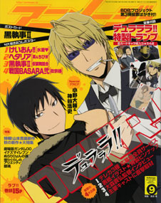 本月為『無頭騎士異聞錄』大特集。封面當然就是這兩個人,臨也&靜雄。主力特集為,附贈夾頁海報的15P大量特集。讓人在意的內容有大森貴弘導演的訪談、出演大人氣的臨也與靜雄的神谷浩史&小野大輔的特別訪談等。然後,本月號的附錄也是『無頭騎士異聞錄』。「Animage」慣例的大人氣項目=撲克牌,終於『無頭騎士異聞錄』登場! 總計54張的卡片裡每張都有彩圖的超豪華附錄。主要角色當然有,甚至是那種角色也出現在了撲克牌上?!找尋自己喜歡的卡片也是種樂趣呢♪ 甚至連應募者全員贈禮也是『無頭騎士異聞錄』。本月『無頭騎士異聞錄』電話卡3款登場。樣式為本月號的封面彩圖、全員集合泳衣彩圖(前號海報款)、杏里的稀少彩圖,共3款。只有在這裡才能得到的獨創商品,請期待吧!!這樣還沒完呢 !在本月號裡附贈4大人氣作品的未公開新圖海報☆ 『戰國BASARA貳』政宗with黑龍、『黑執事II』化裝舞會、『K-ON!輕音部』泳衣姿、『義呆利World Series』英國&幼時美國,各個都是讓人開心的彩圖。還有,『黑執事II』特製明信片。甚至還有,絕對不能忘記的,終於決定舉辦的「用你的力量決定BD化 企劃第3彈」。這次也是Animage的讀者才有投票權。用你的1票,將幻想的作品們完成BD化吧!就是這樣,本期也是滿載人氣作品與有趣企劃的「Animage9月號」,千萬不要錯過囉♪