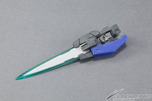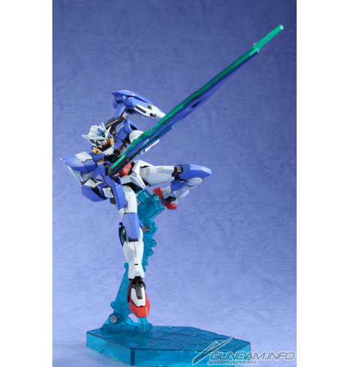 使用GN劍的姿勢非常有魄力! 可實現2種類的攻擊MODE等等,套件滿足度相當高。除此之外,附屬的動作底座也是以GN粒子為印象,並以金屬綠所製作完成,相當閃亮。再加上與精緻的造型作結合,非常美麗…。